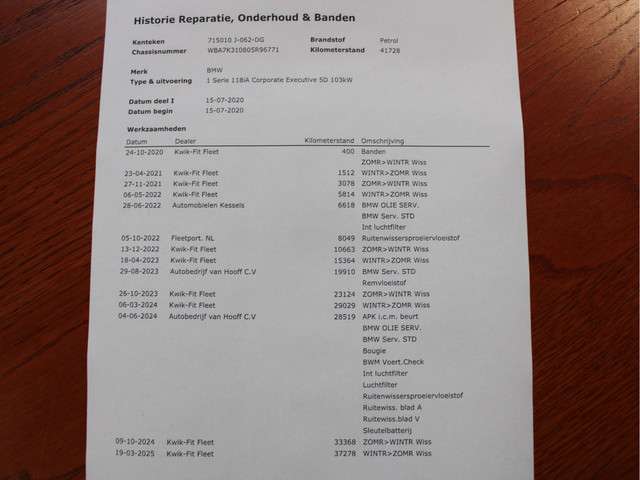 - Onderhoudshistorie
