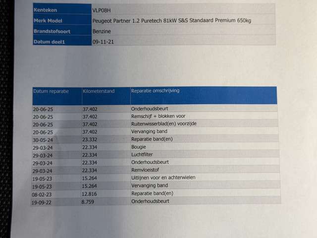 Voertuiggegevens van deze Peugeot Partner