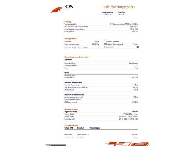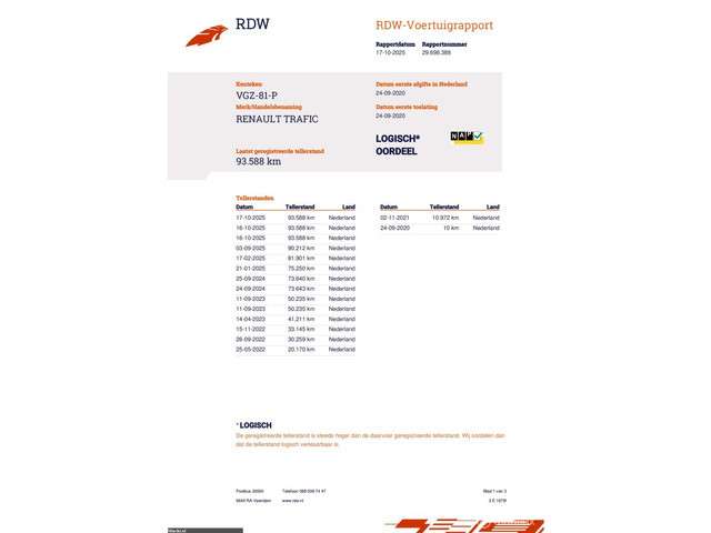 Voertuiggegevens van deze Renault Trafic
